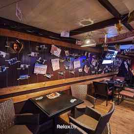 Если вам захочется сменить обстановку и с головой окунуться в романтическую атмосферу или просто отдохнуть от суеты, можно подняться в небольшой зал на втором этаже. Стильные диванчики, мягкие подушки, приглушенный свет и негромкая музыка придают ему уют и некоторую интимность. А дым от кальяна, который всегда можно заказать в баре, окутывает в еще большую таинственность.